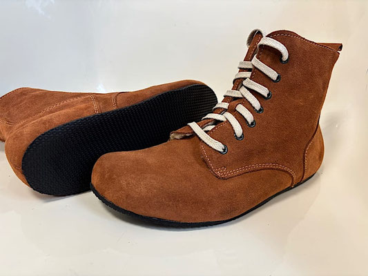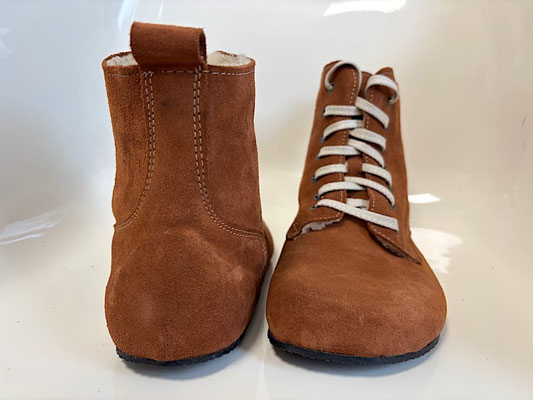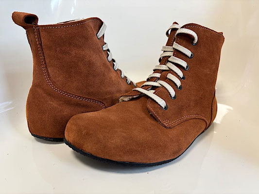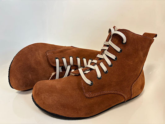 Der Frost Brown ist ein klassischer unisex Winter-Barfußschuh für Anfänger, der Natürlichkeit und Komfort vereint. Das weiche Wildleder sorgt für ein angenehmes Tragegefühl, während das warme Webpelzfutter Ihre Füße selbst an kalten Tagen schützt. Die 3 mm flexible Naturkautschuk-Sohle ermöglicht ein sanftes, natürliches Laufgefühl – ideal für Einsteiger, die ihre Füße langsam an Barfußschuhe gewöhnen möchten. Da das Wildleder besonders anschmiegsam ist, empfehlen wir Ihre übliche Größe. Natürlich handgefertigt in unserer deutschen Manufaktur – Qualität, die man am Fuß spürt. Die richtige Schuhpflege finden Sie hier… Pflichtangaben zur Produktsicherheit; Hersteller Senmotic 1.0 OHG | Wettinerstr. 54 08280 Aue-Bad Schlema | www.senmotic-shoes.com